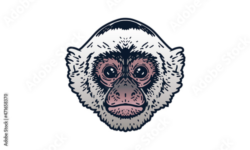 Fototapeta premium Capuchin head illustration, vector, hand drawn, isolated on light background.