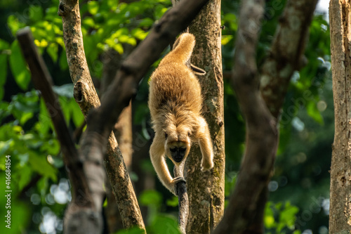 Obraz premium Capuchin Monkey Climbing Down Tree