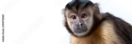 Obraz premium Capuchin monkey facing camera in white studio background