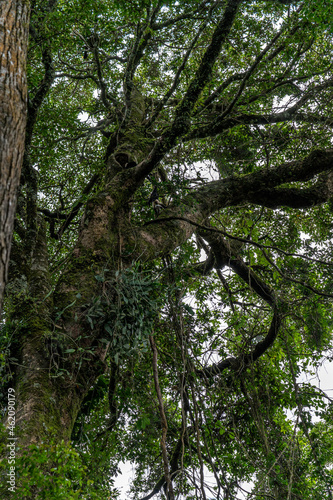 © formgefuege, Obraz premium Capuchin monkey in a tree. Tropical plants and trees combinations in Costa Rica, Monteverde rainforest.