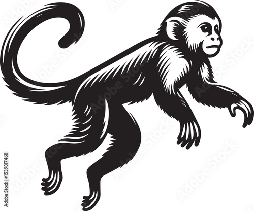 © Sarmad, Obraz premium Capuchin Monkey Simple Black and White Vector Illustration