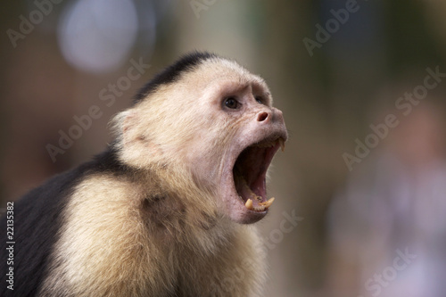 Naklejka premium Capuchin White Faced Monkey with Mouth Open