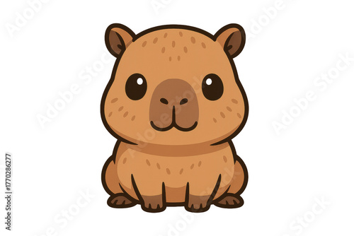 Fototapeta premium Capybara cartoon illustration character standing, cute animal rodent graphic...