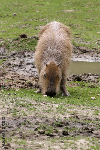 Fototapeta premium Capybara, Hydrochoerus hydrochaeris, pasture