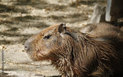 Fototapeta premium Capybara (Hydrochoerus hydrochaeris) resting