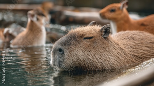 Obraz premium Capybara Serenity: Semi-Aquatic Rodents in Water