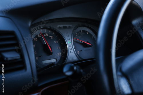 Fototapeta premium Car analog dashboard in a right-hand drive car