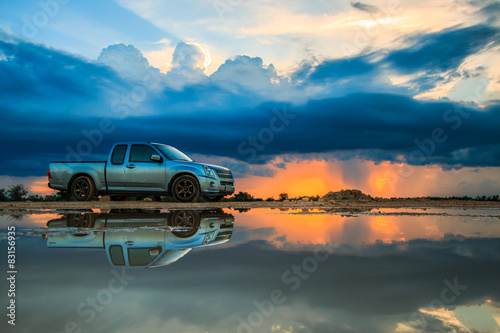 Obraz premium Car and sunset sky