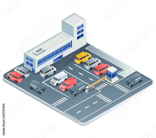 © hasan, Obraz premium Car company parking lot in isometric illustration