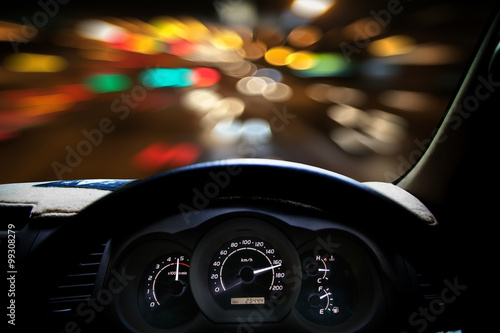 © Panya, Obraz premium Car dashboard speeds while on the road. car driving fast.