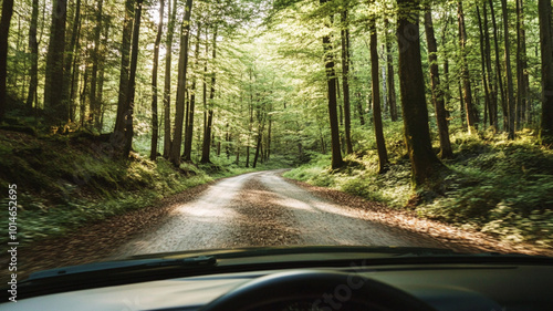 Obraz premium car driving in forest