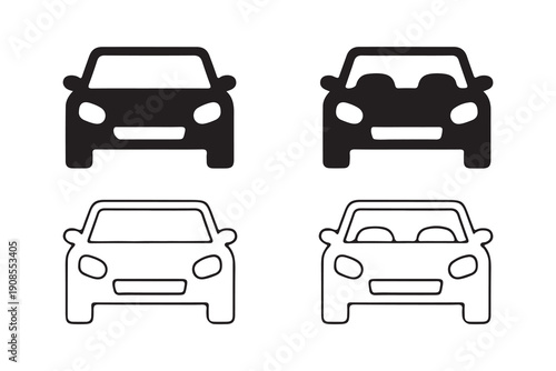 © VectorStockStuff, Fototapeta premium Car Front View Icon Set Solid and Outline Automobile Vector Collection