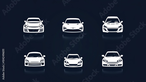 Naklejka premium Car Icons on White Background. This image features a collection of stylish car icons, each designed with sleek lines and modern aesthetics. The icons represent various car models, including sedans,
