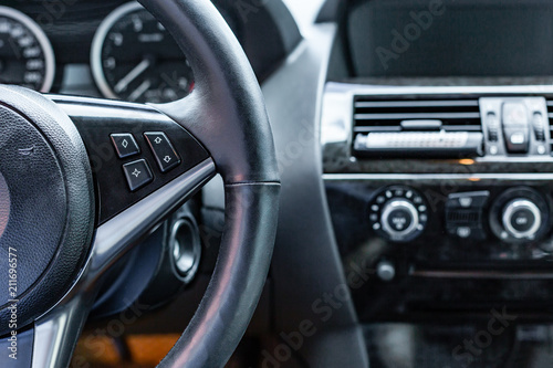 Naklejka premium car interior. Modern car speedometer and dashboard. Luxurious car instrument...