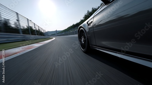 © CreativeCreations, Fototapeta premium Car is racing down a track with a blurred background
