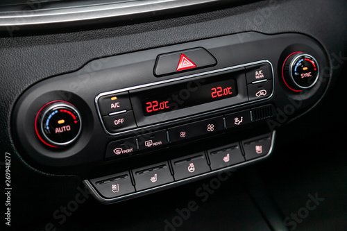 © Виталий Сова, Fototapeta premium Car media control knob with function buttons, player, radio in car