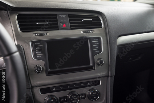 Fototapeta premium Car multimedia screen close-up. Interior detail.