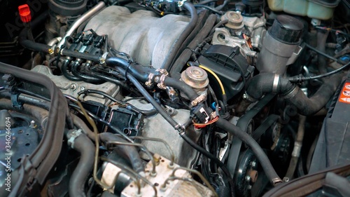 © Vlamin, Fototapeta premium Car repair shop - engine under the car hood