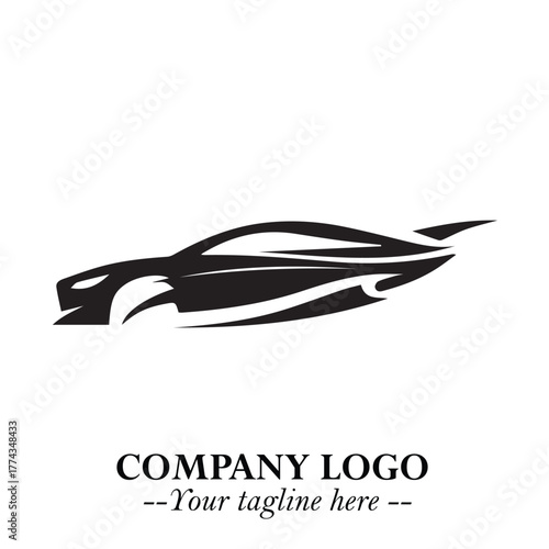 © Wube, Obraz premium Car Running Fast Logo Symbol in Black on the White Background with Dynamic Speed Design