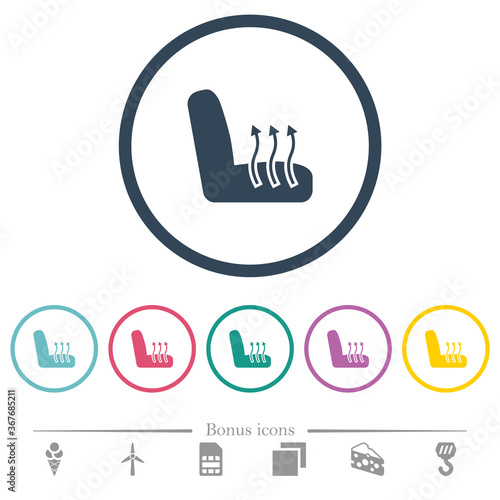 © botond1977, Obraz premium Car seat heating flat color icons in round outlines