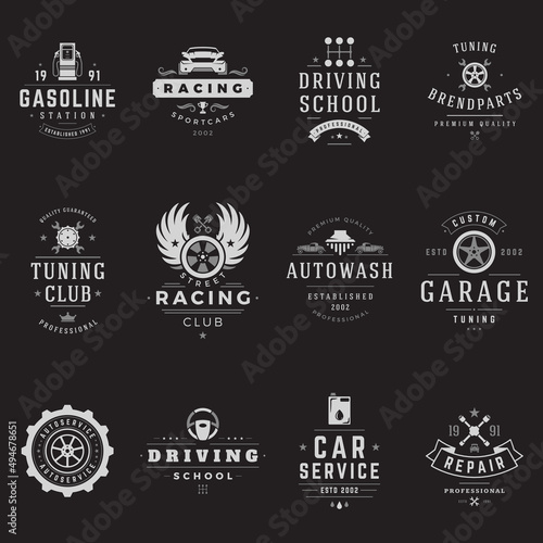 Fototapeta premium Car service logos templates set. Vector objects and icons for garage labels,...