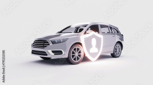 Naklejka premium Car Side Profile with Glowing Shield Emblem in a Bright Room - Safety Auto...