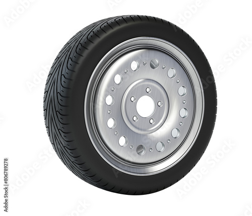 © Destina, Obraz premium Car tire and wheel isolated on transparent background. 3D illustration