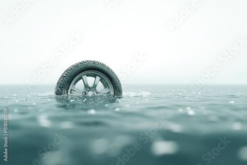 © Andrii , Naklejka premium Car Tire Floating in Deep Water