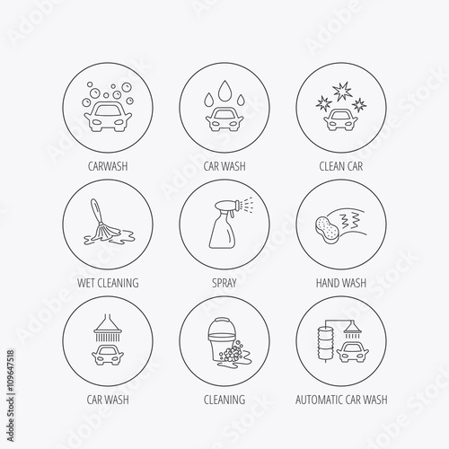 © tanyastock, Fototapeta premium Car wash icons. Cleaning station linear signs.