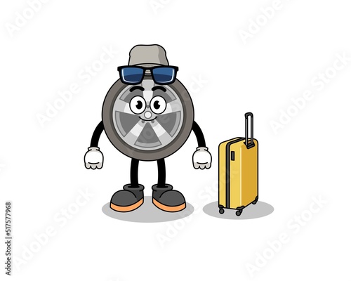 Fototapeta premium car wheel mascot doing vacation