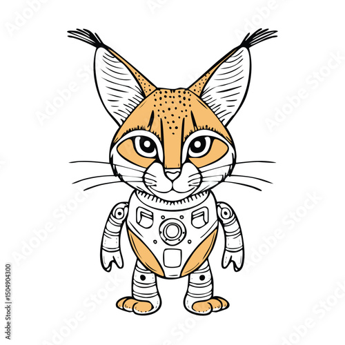 © cloud7days, Fototapeta premium Caracal Robot vector illustration in hand-drawn sketch style with minimalist detail