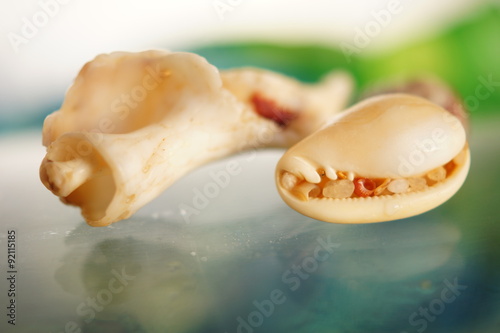 © vickytretrop, Fototapeta premium Caracolas marinas sobre cerámica. Macro