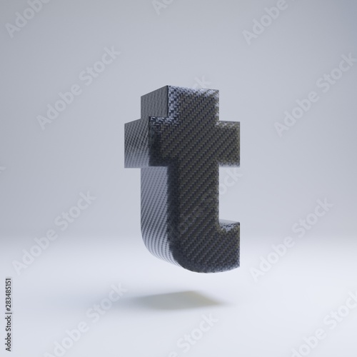 Obraz premium Carbon fiber 3d letter T lowercase. Black carbon font isolated on white...