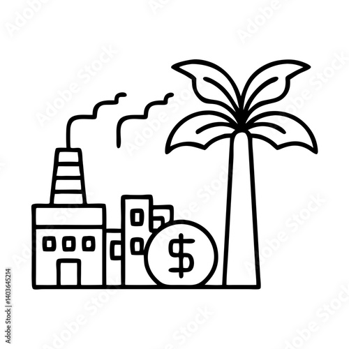 Fototapeta premium Carbon Offset Icon: Factory and Palm Tree Representing Sustainability