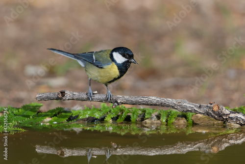 © JOSE ANTONIO, Obraz premium carbonero común bebiendo en el estanque del parque (Parus major)