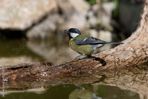 © JOSE ANTONIO, Obraz premium carbonero común posado en el estanque del parque (Parus major)