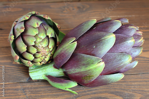 Fototapeta premium Carciofi su tavolo di legno