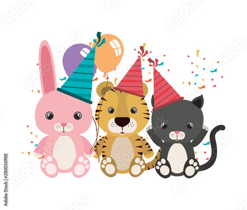© Grgroup, Naklejka premium card of celebration with animals on white background