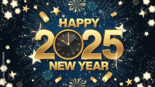 Fototapeta premium card or banner to wish a happy new year 2025 in gold with gold-colored...