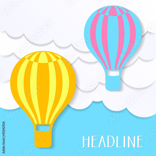 Fototapeta premium Card with clouds and balloons