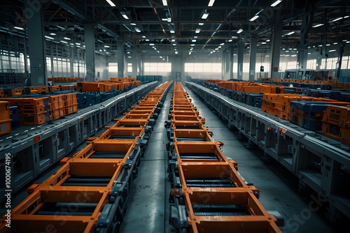 © lwin, Fototapeta premium Cardboard box packages on trolley. Logistics and distribution service