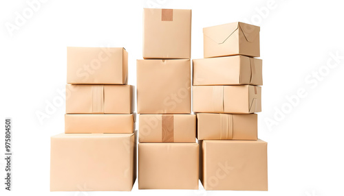 © Ajay, Fototapeta premium Cardboard boxes isolated on transparent background. 3d illustration.