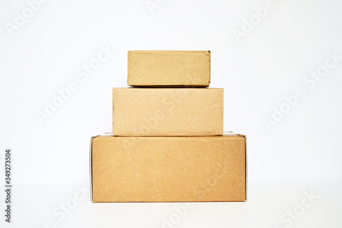 © LivaLife, Obraz premium Cardboard boxes isolated on white background.