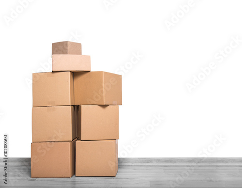 © Denis Rozhnovsky, Obraz premium Cardboard boxes on white.