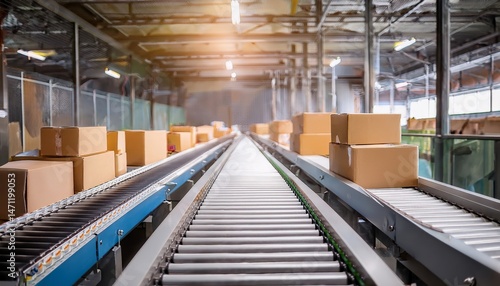 © Stefan Schurr, Fototapeta premium Cardboard Boxes, Parcels, Mail and Packages are Transported on an Automatic Conveyor line