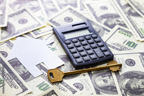 Fototapeta premium Cardboard house,calculator and key