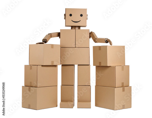 Obraz premium Cardboard Robot Art Installation with Stacked Boxes