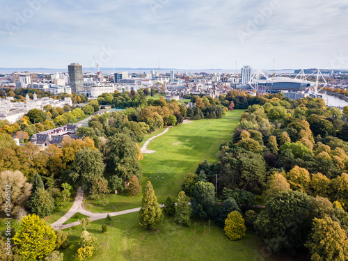 Naklejka premium Cardiff's Bute Park in the autumn viewed from the air