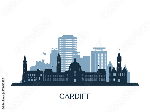 © greens87, Fototapeta premium Cardiff skyline, monochrome silhouette. Vector illustration.
