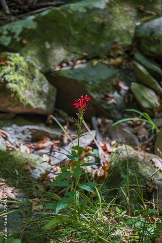 Obraz premium Cardinal Flower with rocks in background